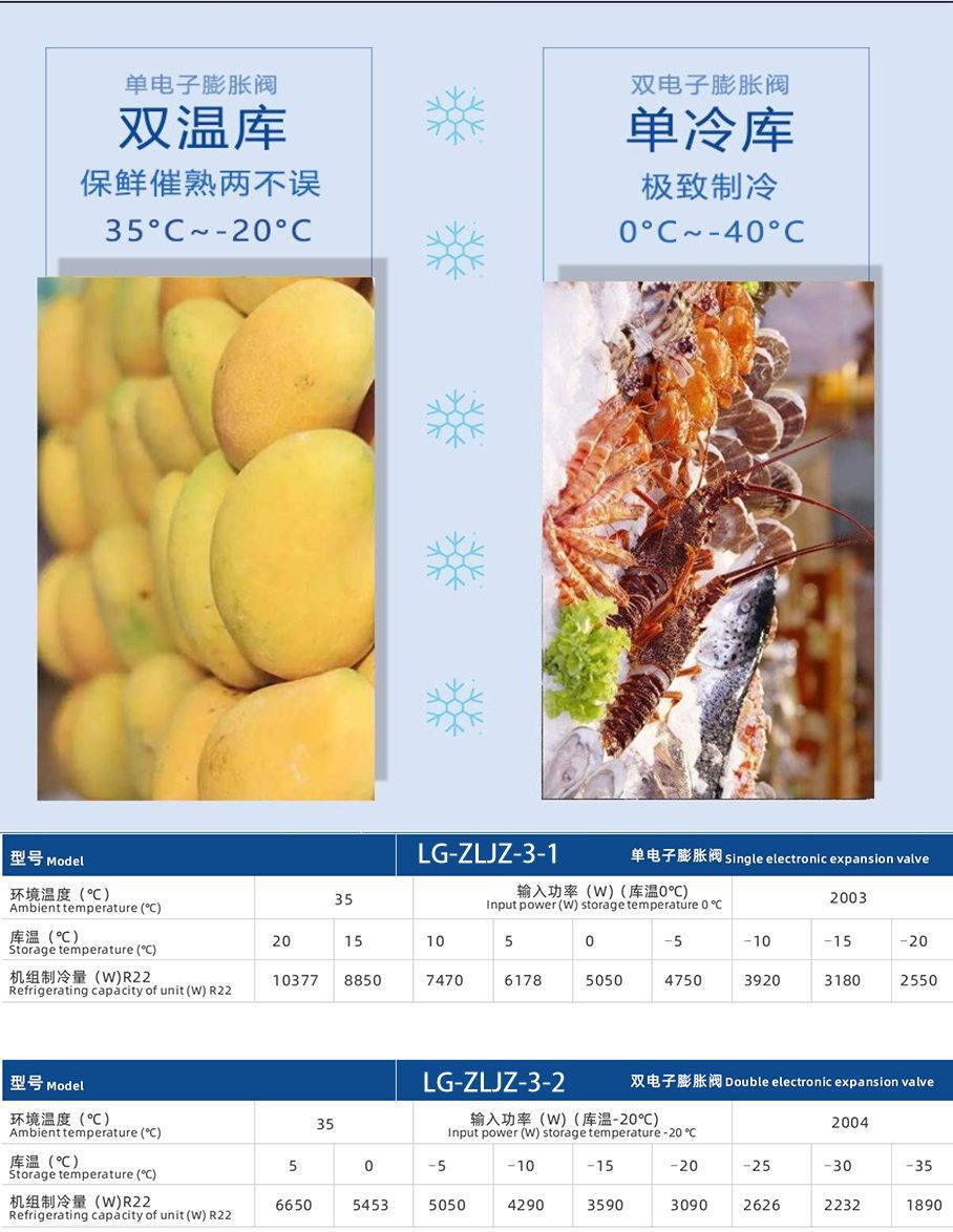 冷庫(kù)智能機(jī)組3P 冷凝機(jī)組:LG-ZLJZ-3 冷媒型號(hào):R22/R404A 電壓:220V/380V?冷風(fēng)機(jī):LG-LFJ-3
